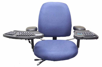 Sometime after I tested the prototype, the keyboard developers joined forces with a chair manufacturer and released it as a combined system known as Interfaces by Cramer. After a while Interfaces was bought by Kinesis and they renamed the keyboard Evolution. Kineses made a desktop model, an under desk arm suspended model, and the chair mounting model.
